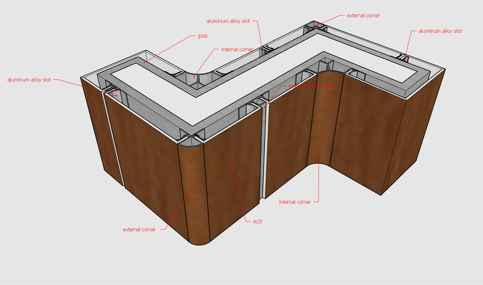 Our aluminum composite panels can be easily processed using both woodworking and metalworking tools, allowing for various operations such as cutting, sectioning, milling, perforating, compressing, folding, and bending. This enables precise fulfillment of architectural decorative needs, including designs like curves, reverse curves, small-radius bends, and both internal and external angles. Such versatility is uncommon in other decorative materials.
